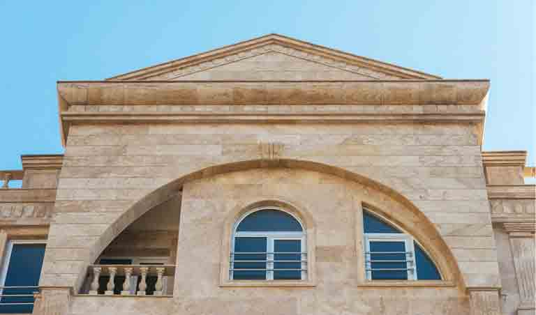 به دلیل مقاومت بالا در برابر شرایط جوی و زیبایی طبیعی، تراورتن یکی از پرطرفدارترین سنگ ها برای نمای خارجی ساختمان است. |